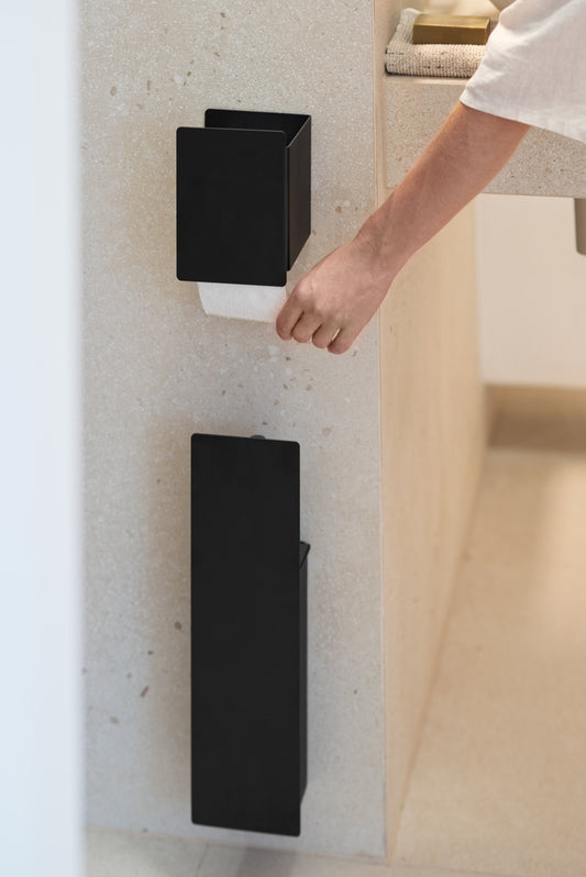 CUBO schwarzer Toilettenpapierhalter mit Ablage