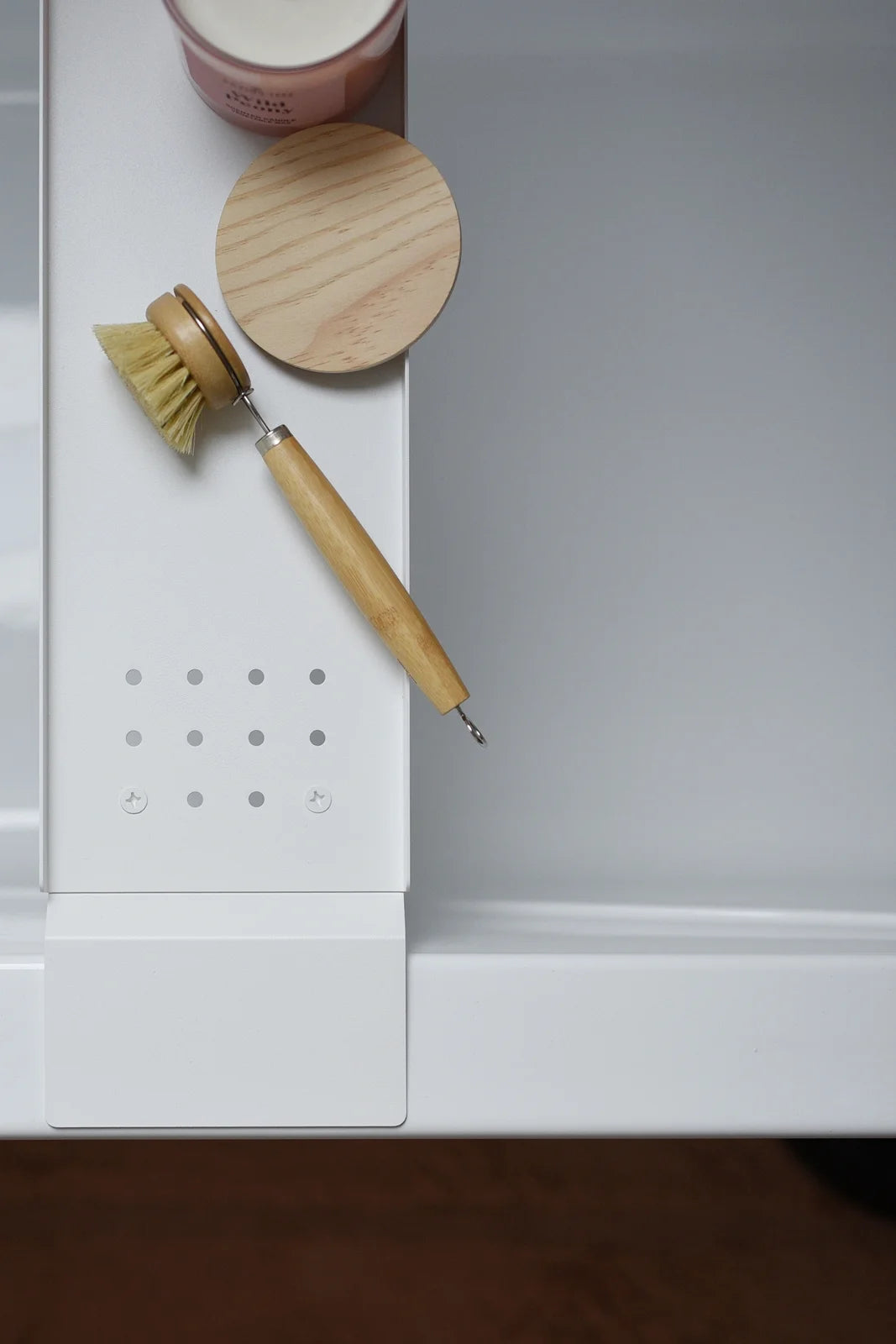 - Die Ablage ist perforiert, damit überschüssiges Wasser leicht abfließen kann.